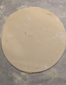 Afin d’être sûre que la fève soit gagnée ou tirée j’ai voulu faire une petite galette ( Ø20 cm nous étions 4 convives) Elle était généreusement garnie (2 épaisseurs de crème)..et il me reste un peu de frangipane.