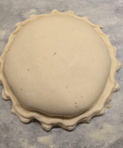 • Humidifier les bords du cercle de pâte et déposer le second. Souder délicatement puis chiqueter la galette.