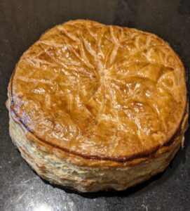 Pour ma part je suis convaincue que la garniture (frangipane ou crème d’amande) révèle tous ses arômes le lendemain. La faire la veille et la réchauffer à 150° avant de la déguster me semble un bon compromis.