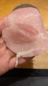 • Découper des disques dans le jambon et de fines lamelles dans le fromage.