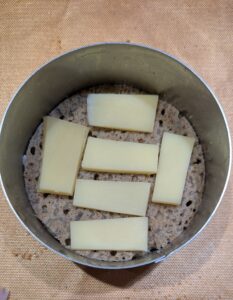 • puis des lamelles de fromage.. vous pouvez continuer le montage en fonction de la hauteur du cercle.