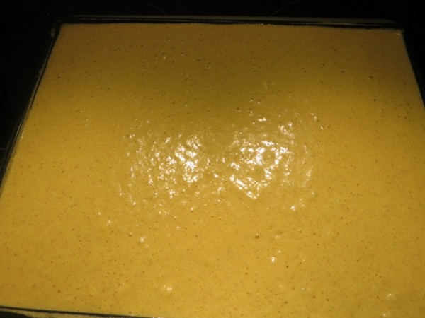 - Sur un tapis en silicone, ou sur une plaque à pâtisserie recouverte de papier sulfurisé verser la pâte et l'étaler bien régulièrement à l'aide d'une spatule. Enfourner et baisser immédiatement la température à 170° pour 8 minutes Sortir du four et laisser refroidir.