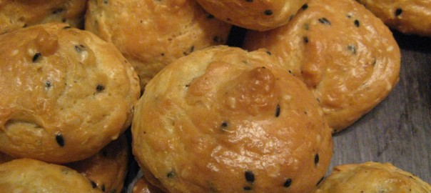 Une touche japonisante pour la gougère au comté. Cette célèbre spécialité bourguignonne est composée d'une pâte à choux salée, poivrée et de cubes de Comté. Elles sont formées à la cuillère ou à la poche à douille avant d'être cuites au four. Elles se servent à l'apéritif, accompagnant le célèbre Kir ou en entrée dans ce cas elles peuvent être garnies d'une compotée d'oignons ou d'une sauce Mornay, d'escargots ...
